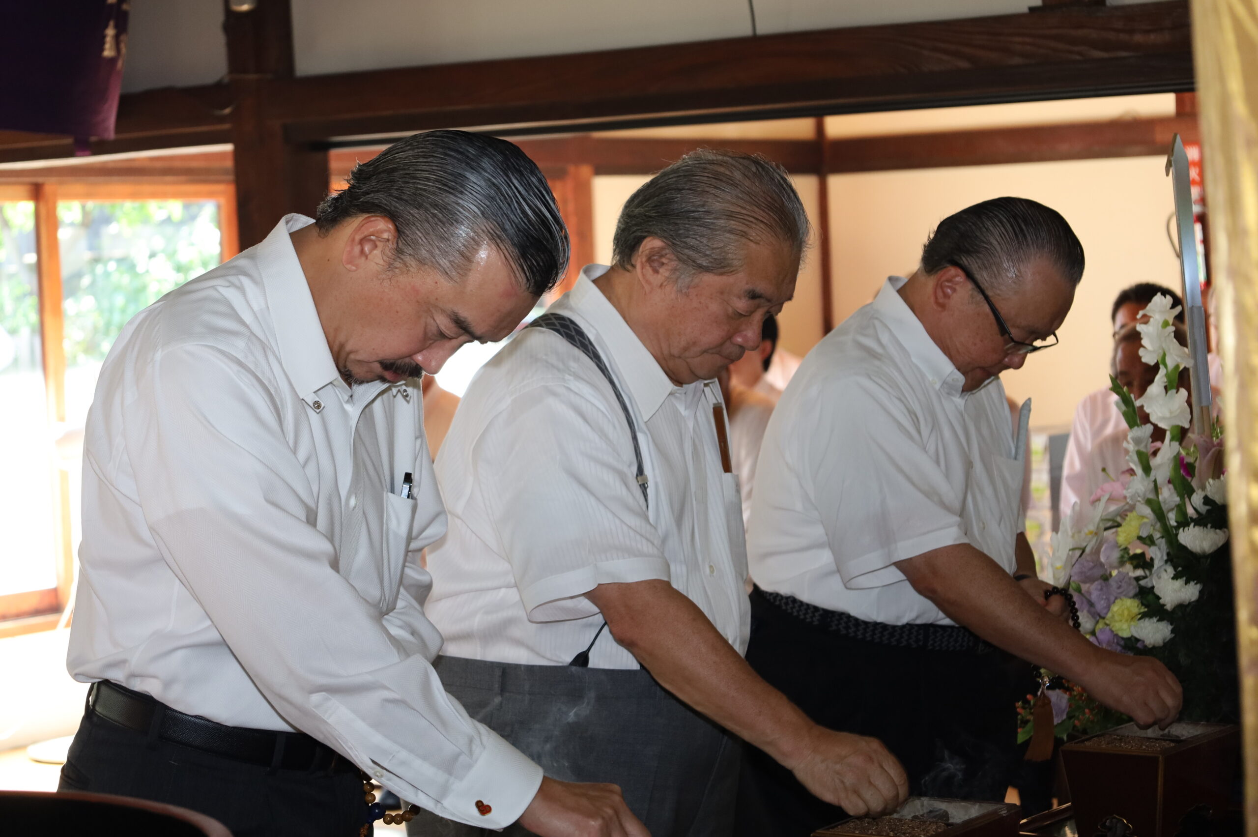 初代会長 故 藤木幸太郎をはじめとする908柱の諸先輩の御霊を焼香と回向でご供養致しました。